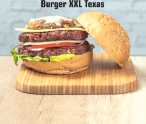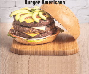 3 capas de 200 gr. ternera, cogollos, cebolla, queso manchego, tomate, aguacate, doble de queso cheddar y salsa bbq.