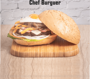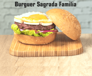 200 gr. ternera, cogollos, tomate, cebolla de Figueres, queso manchego, salsa burger world, cebolla caramelizada y huevo frito.