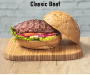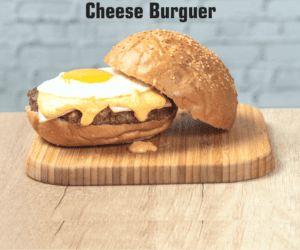 200 gr. ternera, doble de queso cheddar, beicon (pavo) y huevo frito.