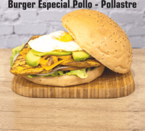 Pollo marinado casero, cogollos, tomate, cebolla de Figueres y salsa burger world.