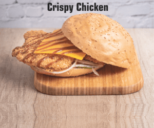 Pollo frito (rebozado casero), cogollos, tomate, cebolla de Figueres, queso cheddar y salsa bbq.