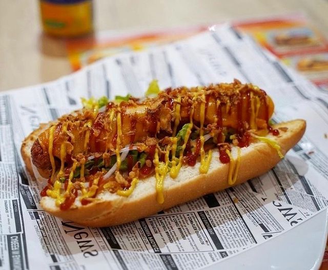 200 gr. ternera, cogollos, tomate, cebolla de Figueres, emmental, cebolla caramelizada, kétchup huerta y pepinillos.